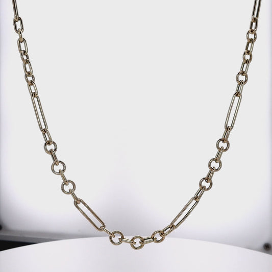 Estate 14k Yellow Gold 17" Round Alternating Rectangular Link Design Chain Necklace