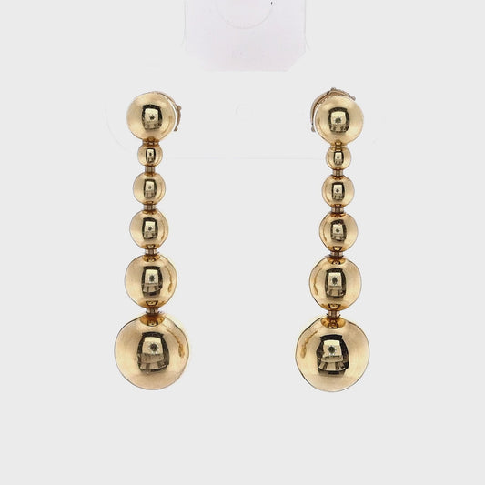 Estate Lagos 18k Yellow Gold Caviar Graduated Polished Ball Drop Dangle Earrings
