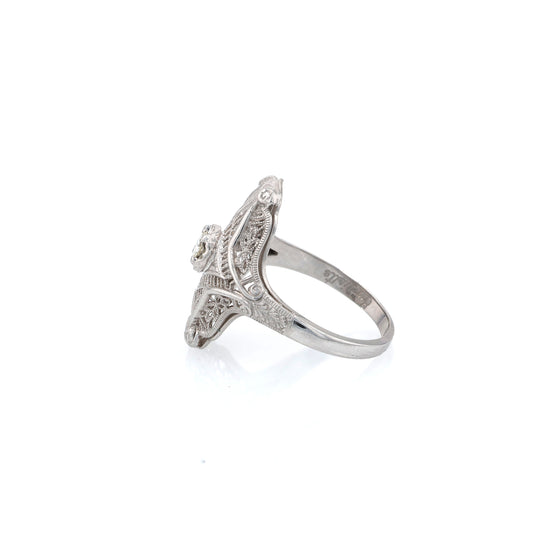Estate 14 Karat White Gold Vintage Shield Shape Filagree Diamond Ring