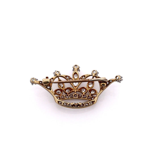 Estate 18k Yellow Gold Platinum and Old European Diamond Crown Pin