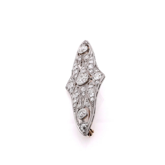 Estate Two-Tone Fan Shaped Milgrain Edge Diamond Brooch Pin