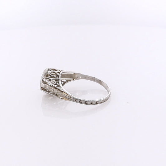 Estate 18 Karat White Gold Filagree and Diamond Ring