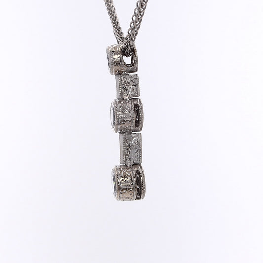 Estate 18 Karat White Gold Graduated Diamond Pendant Necklace