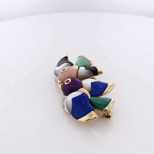 Estate 14 Karat Yellow Gold Double Bird Multi Stone Pin