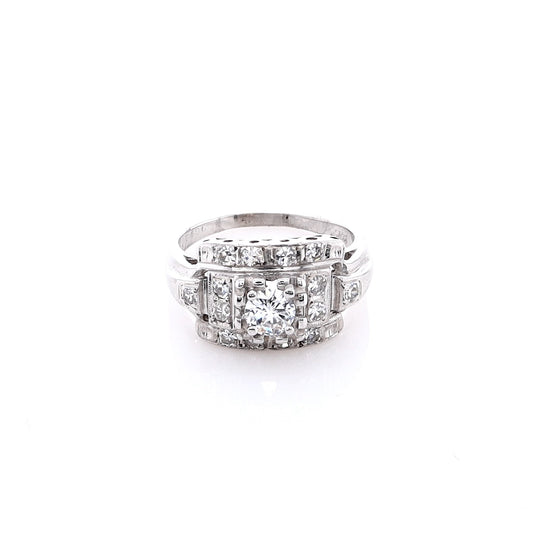 Estate 14 Karat White Gold Milgrain and Diamond Engagement Ring