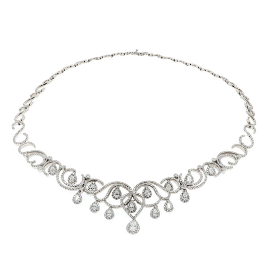 Estate 18k White Gold Crown Design Pave Diamond Swirl Halo Collar Necklace
