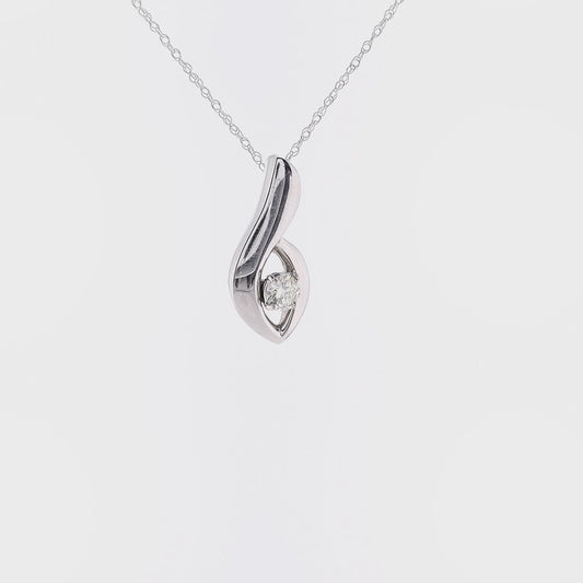 Estate 14 Karat White Gold Polished Free Form Pendant Diamond Necklace