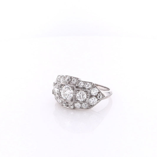 Estate Platinum 3 Across 0.90ct Transitional Round Brilliant Cut Diamond Engagement Ring