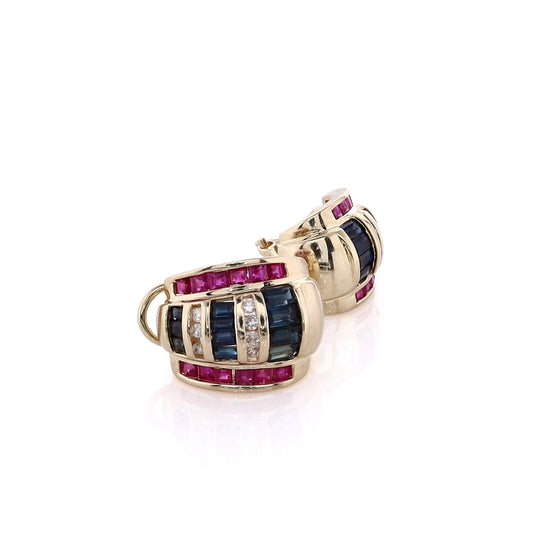 Estate 14 Karat Yellow Gold Sapphire, Ruby and Diamond Stud Earrings