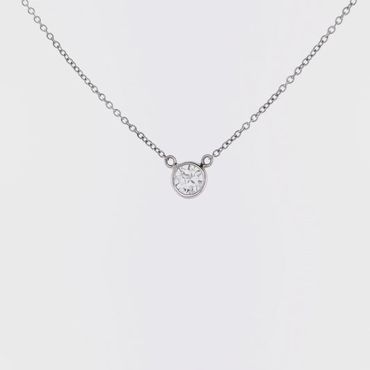 Estate 14 Karat White Gold Solitaire Bezel Set Diamond Pendant Necklace
