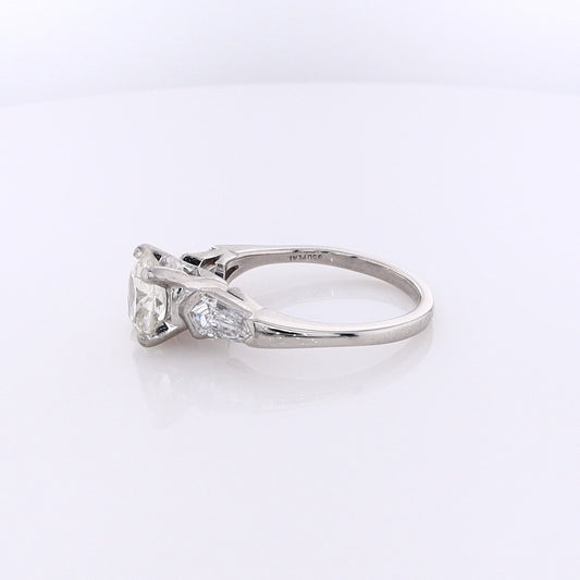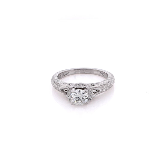 Estate 14 Karat White Gold Engraved Shank Diamond Engagement Ring