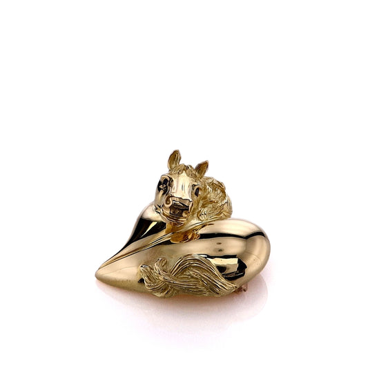 Estate 18k Yellow Gold Heart Horse Pin With Sapphire Eyes