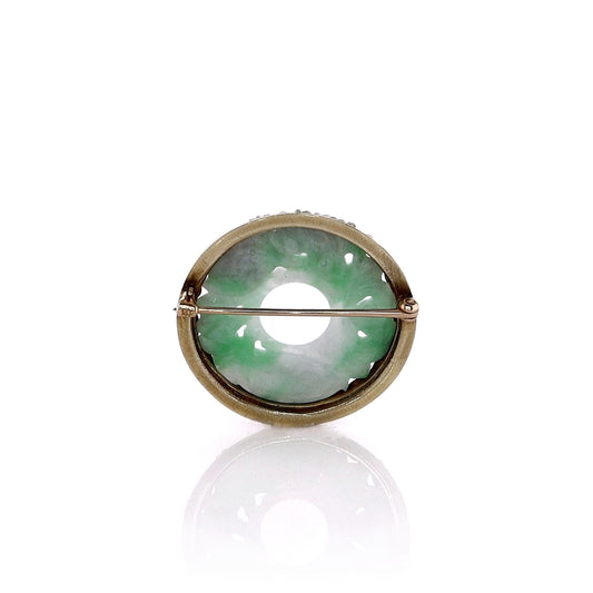 Estate 14k Yellow Gold Green Circle Carved Jadeite and Seed Pearl Pin