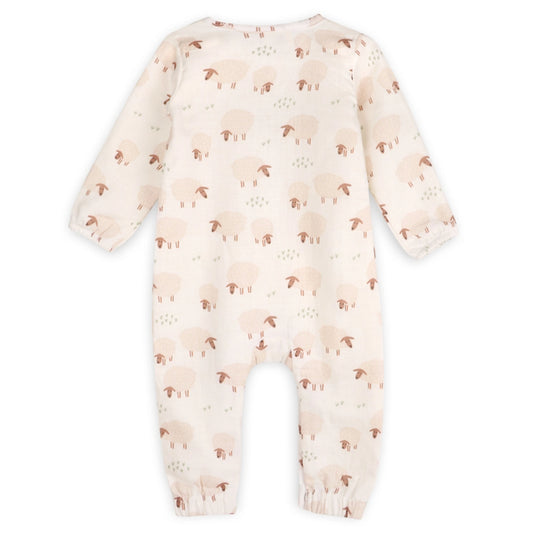 Viverano Organics Sheep Long Sleeve Baby Jumpsuit (Organic Muslin)