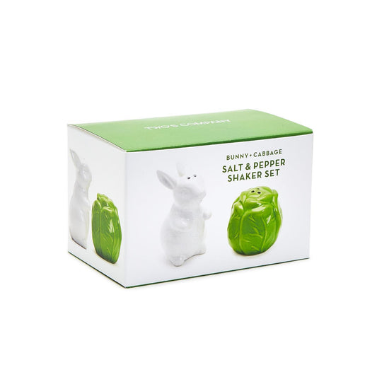 Two's Company Easter Bunny and Cabbage Leaf Hand-Painted Salt and Pepper Shaker Set in Gift Box