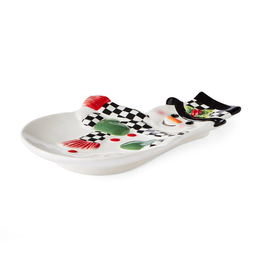 Spode Christmas Tree Black and White Snowman Dish