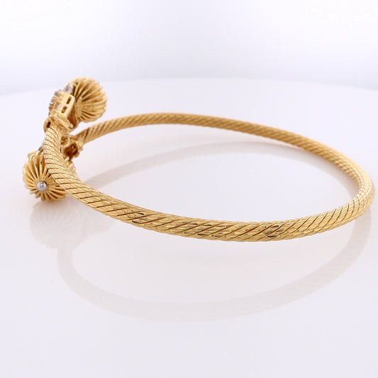 Estate 21 Karat Yellow Gold Bypass Design Diamond Simulant Bangle Bracelet