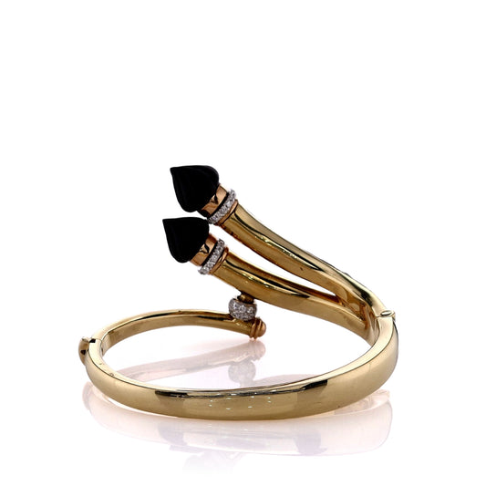 Estate 18k Yellow Gold Carved Black Ornamental Design Diamond Rondelle Bangle Bracelet