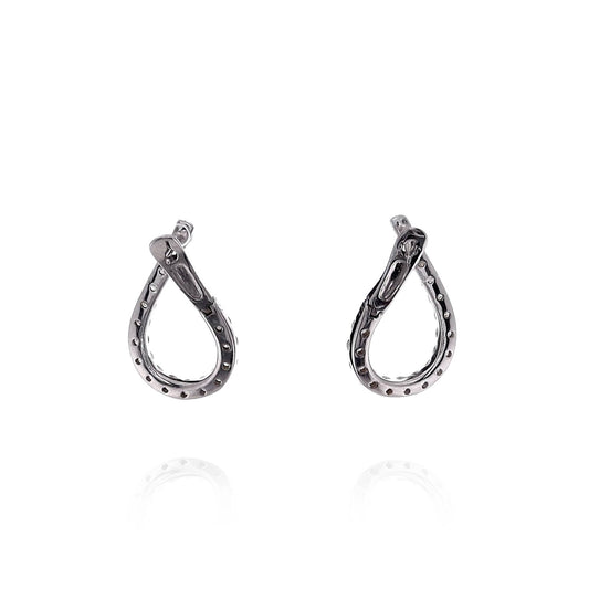 14k White Gold Front Facing Diamond J Hoop Earrings