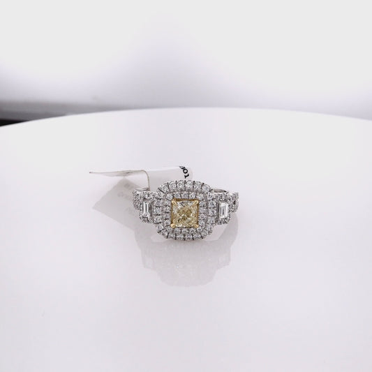 Two-Tone Double Halo/Twist Shank Yellow and White Diamond Ring