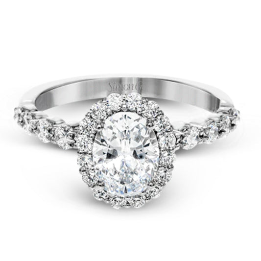 Simon G. 18k Oval-Cut Halo Engagement Ring with Diamonds