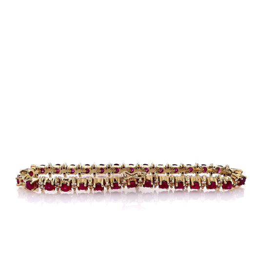 Estate 18k Yellow Gold 6.5" Alternating Ruby and Diamond Bracelet
