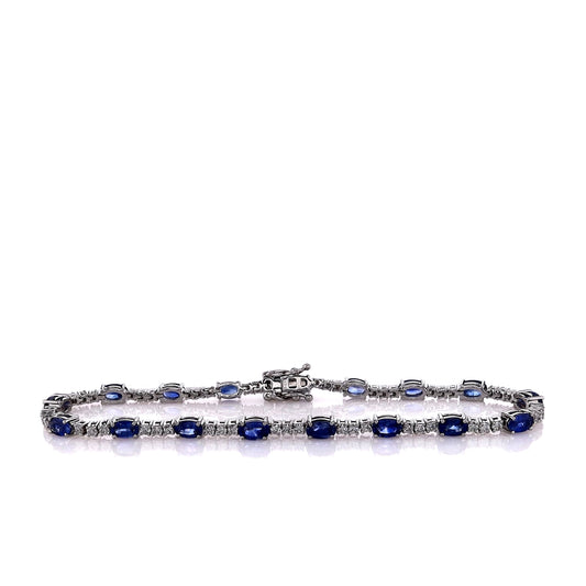 Estate 14k White Gold 7" Alternating Oval Sapphire and Diamond Bracelet