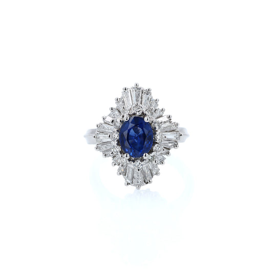 Estate Platinum Sapphire and Diamond Double Halo Ballerina Style Ring