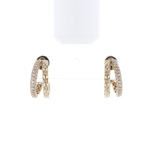 A. Jaffe 14k Gold Small Two Row Quilted and Pave Hoop Earrings with Diamonds