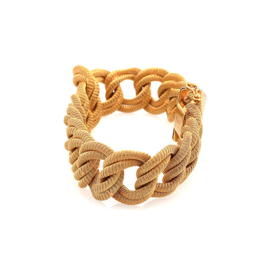 Estate 18 Karat Yellow Gold Interlocking Double Textured Oval Link Bracelet With Hidden Box Clasp