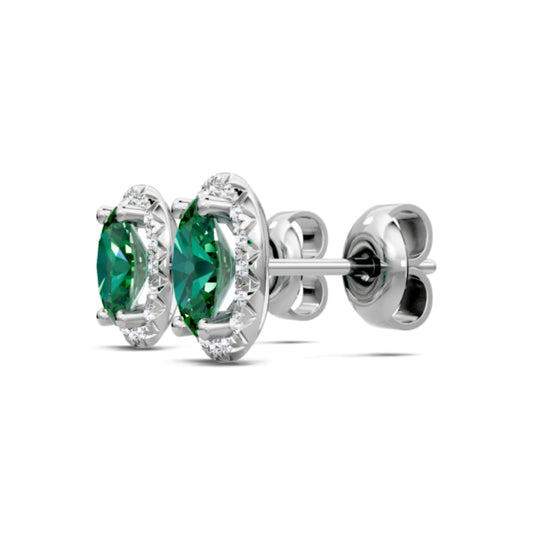 14k Emerald and Diamond Halo Stud Earrings