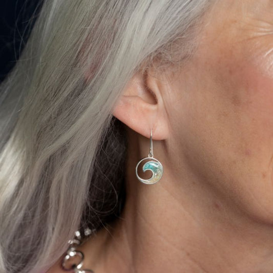 Dune Wave Drop Earrings - Diamond & Turquoise Gradient