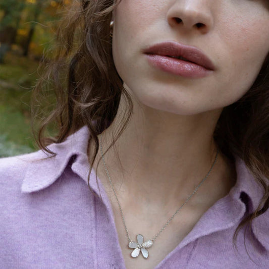 MRK Mother of Pearl Flower Necklace with Pavé White Sapphires