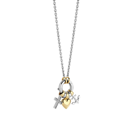 Ti Sento Two-Tone Love, Faith, Hope Charm Pendant Necklace