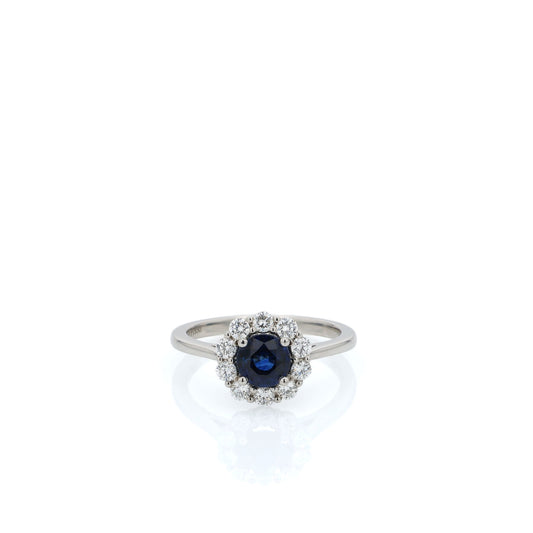 Platinum 1ct Round Blue Sapphire and Diamond Halo Ring