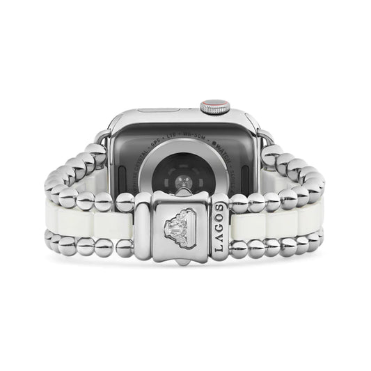 Lagos Smart Caviar White Ceramic and Stainless Steel Watch Bracelet, 38-45mm