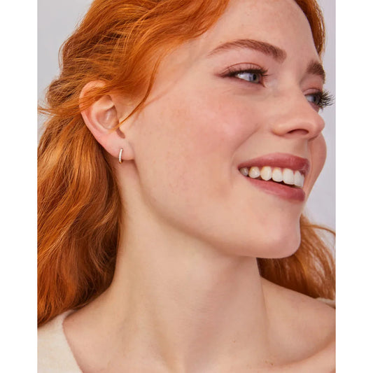 • Kendra Scott Mila 14k Yellow Gold Huggie Earrings in White Diamond