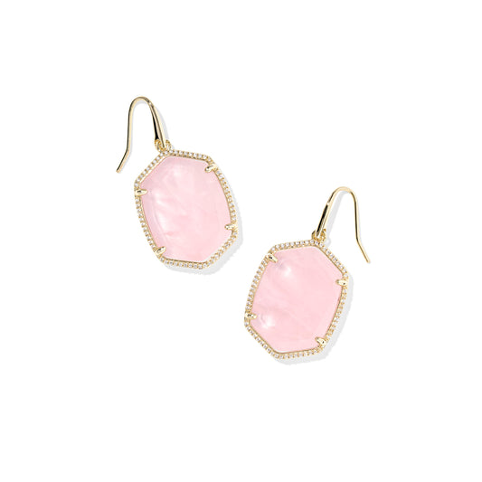 Kendra Scott Daphne Pave Frame Drop Earrings - Rose Quartz