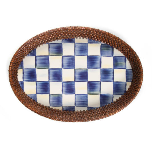 MacKenzie-Childs Royal Check Rattan & Enamel Tray