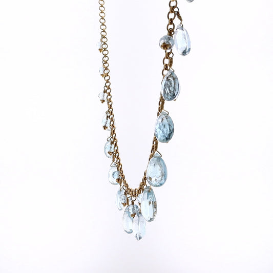 Estate 22k Yellow Gold Alternating Aquamarine Briolette Necklace