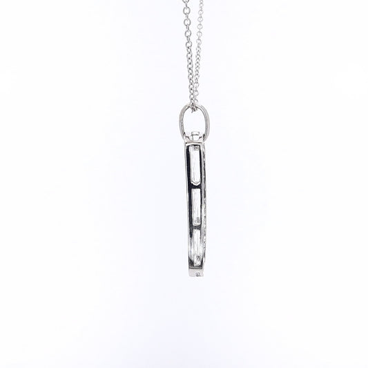 Estate 14 Karat White Gold Dog Tag Style Diamond Pendant Necklace