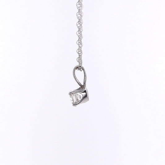 Estate 14 Karat White Gold Solitaire Diamond Pendant Necklace