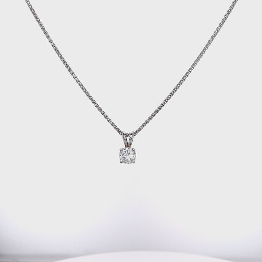 Estate 14k White Gold and Diamond Wheat Chain 4 Prong Solitaire Pendant Necklace