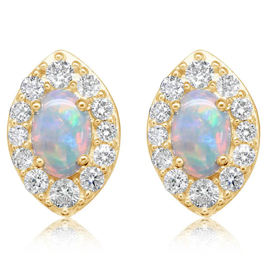 14k Gold Opal and Diamond Halo Stud Earrings