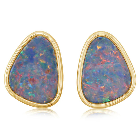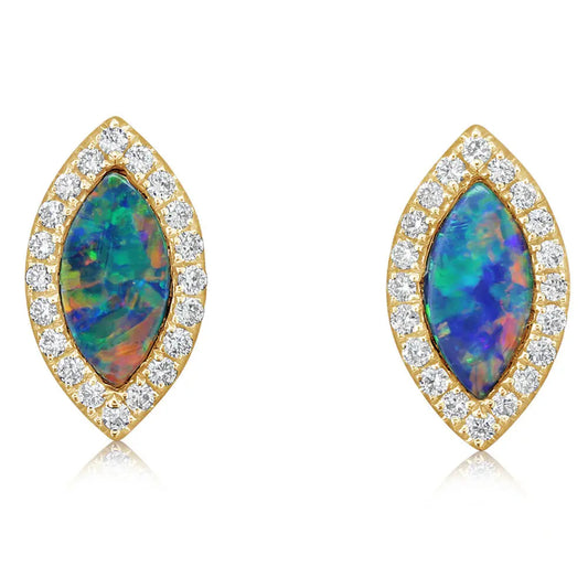 14k Gold Australian Opal Double with Diamond Earrings