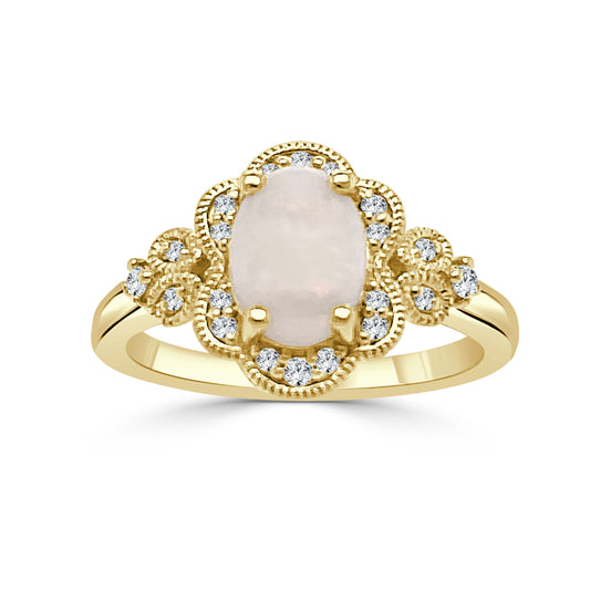 14k Gold Oval Opal Floral Design Ring
