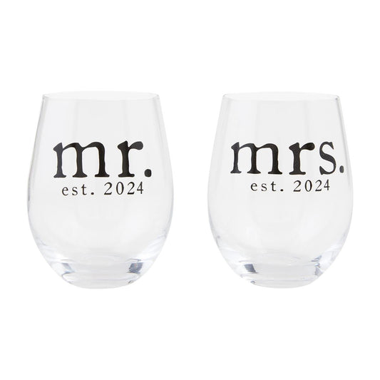 Mud Pie Mr. & Mrs. Est. 2024 Wine Glass Set