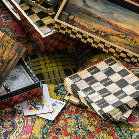 MacKenzie-Childs Courtly Check Paper Napkins - Cocktail - Gold