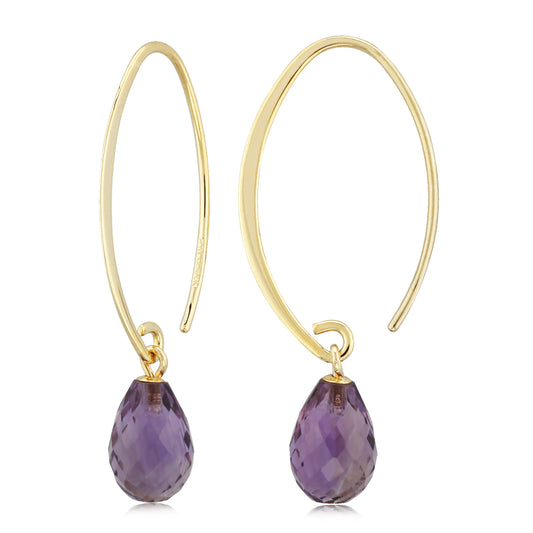 14k Gold Simple Sweep Gemstone Drop Earrings