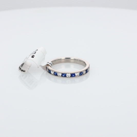 Platinum Milgrain Edge Alternating Sapphire and Diamond Halfway Band